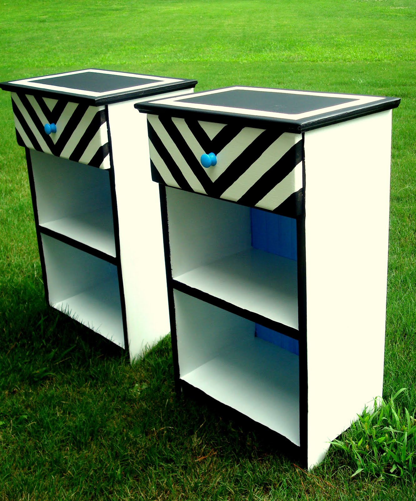 These cute tables were a garage sale find at $15 for the pair! I couldn't pass them up and love their transformation.